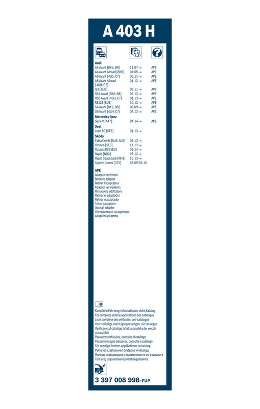 Compatible with SKODA SUPERB II Universālis (3T5) , SKODA FABIA II Combi (545) , AUDI A6 C7 Avant (4G5, 4GD)